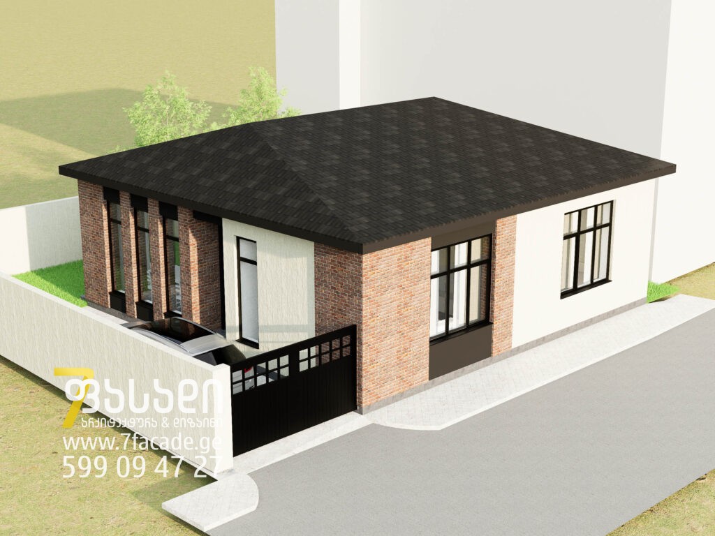 110 კვ.მ ერთსართულიანი საცხოვრებელი სახლის პროექტი შექმნილია კომფორტული, ფუნქციური და თანამედროვე ცხოვრებისათვის. პროექტი იდეალურია მათთვის, ვინც ეძებს ერთსართულიანი სახლის გეგმარებას 3 საძინებლით, პრაქტიკული სივრცეების სწორი განაწილებით.